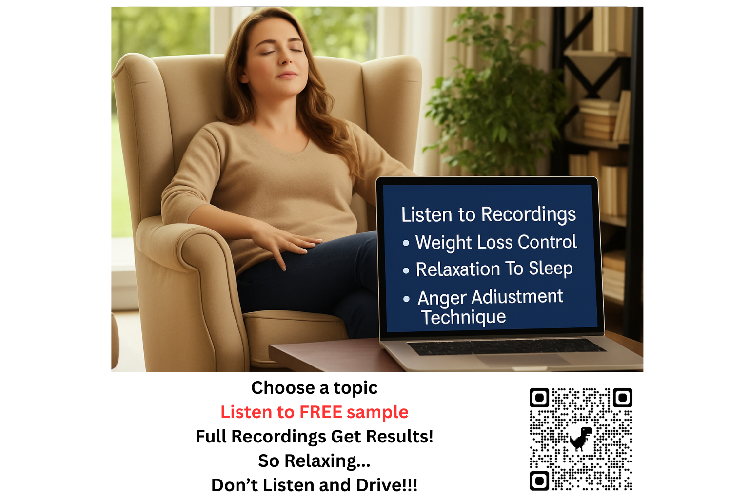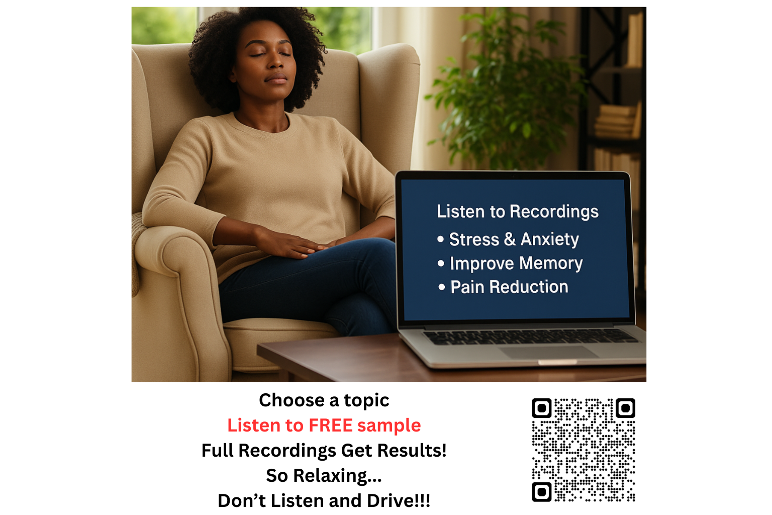 Listen to a sample and purchase the complete version and learn to relax anywhere, anytime.